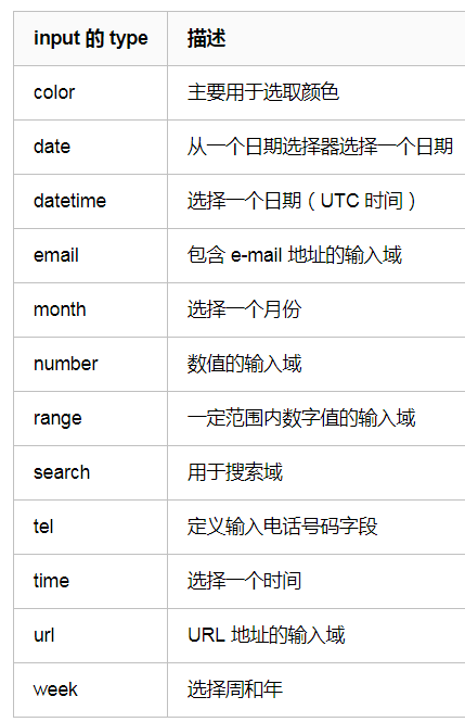 - 新增input输入类型,这些新特性提供了更好的输入控制和验证: