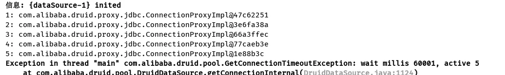这是我的配置文件,初始化连接数是3,最大连接数是5