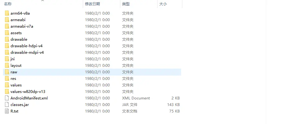总的来说它和jar一样只是普通的zip文件,不过具有不同的文件结构。jar文件以classes.jar的名字被嵌入到aar文件中。
