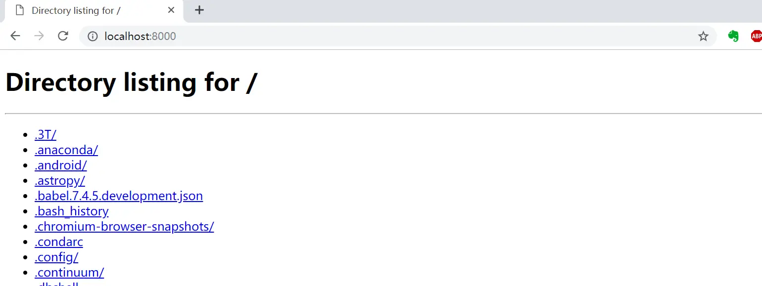 执行后,在本机打开“http://localhost:8000”,或者在局域网内的其它机器上打开“http://本机ip:8000”,就能访问到执行目录下的内容,例如下图就是我本机的内容: