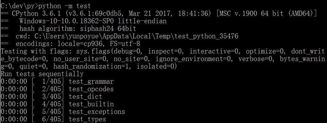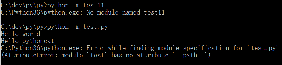 但它的前提是:在执行目录中存在着“test.py”,且只有唯一的“test”模块。对于本例,如果换一个目录执行的话,“python test.py”当然会报找不到文件的错误,然而,“python -m test”却不会报错,因为解释器在遍历sys.path 时可以找到同名的“test”模块,并且执行: