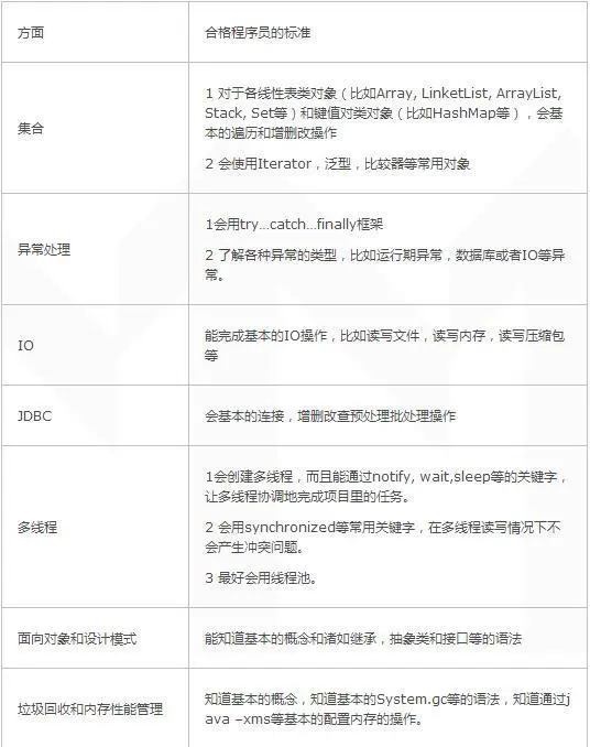 这些也是能找到工作的最低标准,Java Core的标准如下。
