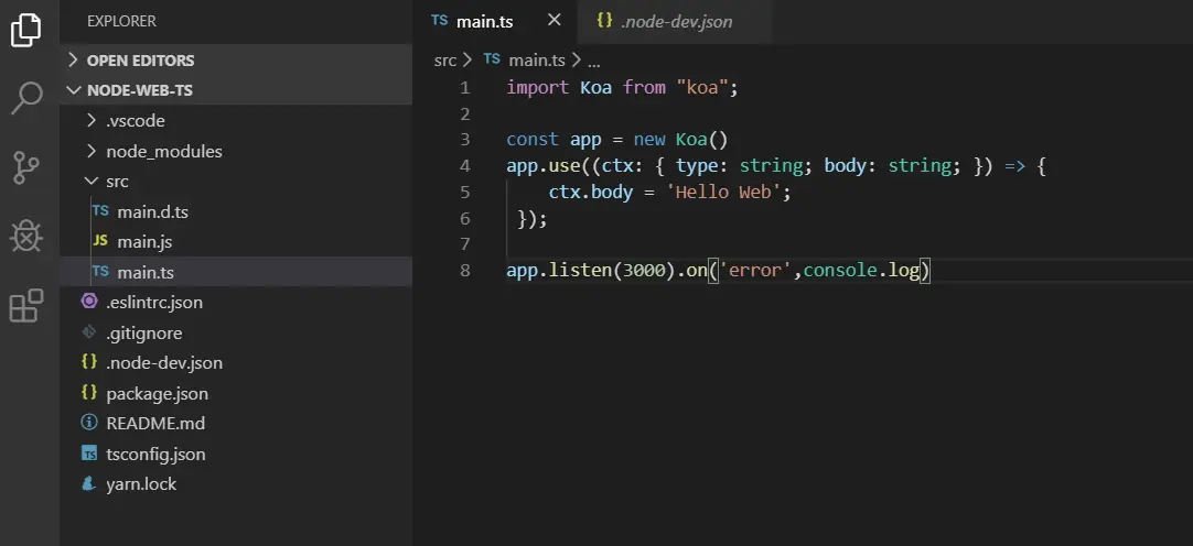 ts-node-dev包据作者描述是直接修改的ts-node和node-dev,所以目录结构中添加了.node-dev.json用于修改默认配置