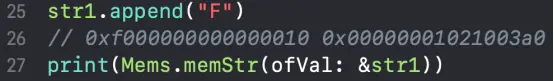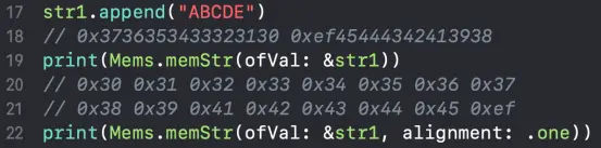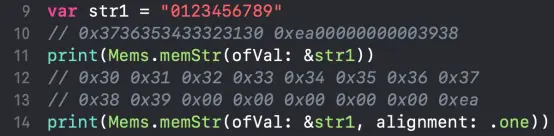 Mems.memStr(ofVal:)默认情况下按照 8 个字节一组来显示内存数据 -