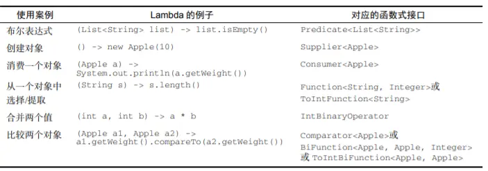 可以把Lambda表达式理解为简洁地表示可传递的匿名函数的一种方式:它没有名称,但它有参数列表、函数主体、返回类型,可能还有一个可以抛出的异常列表。