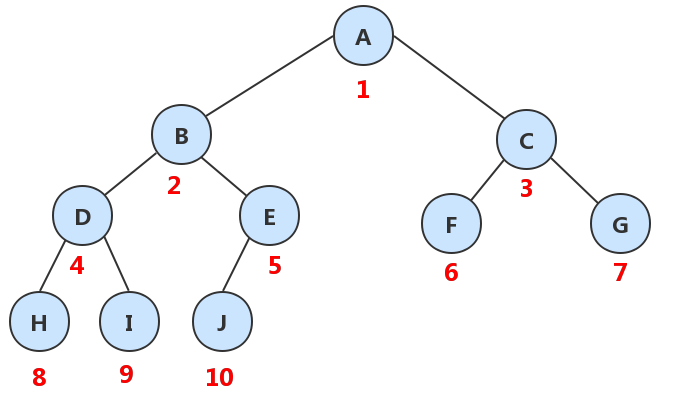 对于一个完全二叉树来说,将树上编号为 i 的结点存储在一维数组中下标为 i 的分量中,如下图所示