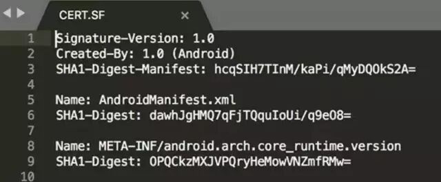 CERT.SF。打开CERT.SF文件,文件的内容如下: