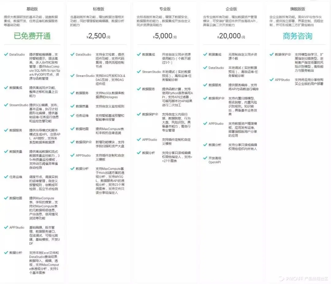 图 阿里云DataWorks版本及收费标准