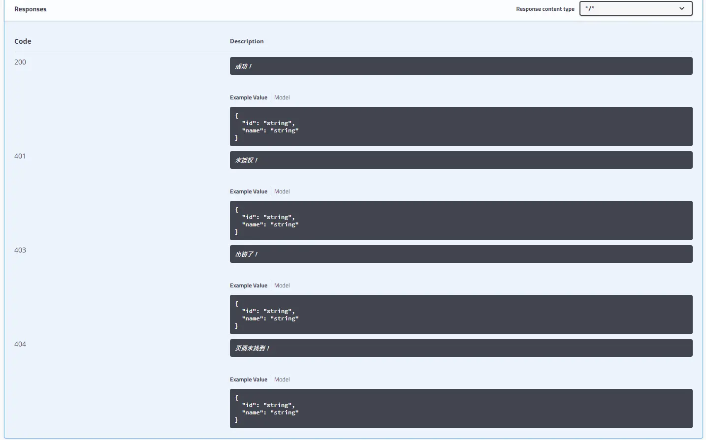 @ApiResponse(code = 403, message = "出错了!", response=Product.class)
