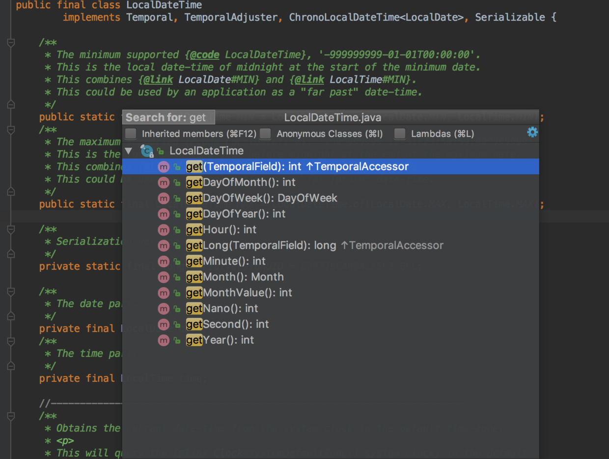 LocalDate、LocalTime、LocalDateTime三者api高度相似,所以不一一列举了。