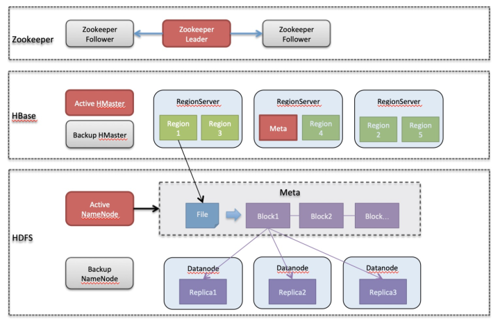 组件角色高可用机制故障影响Zookeeper数据、计算冗余单点宕机秒级服务HDFSNamenode双节点HA部署单点宕机秒级恢复,双节点宕机恢复时间在分钟级Datanode数据、计算冗余单点宕机不中断服务HBaseHMaster双节点HA部署不影响数据读写Meta服务单点,可自愈影响全局不可用Region单点,可自愈局部不可用,单点分钟级恢复,多点恢复时间可达小时级别