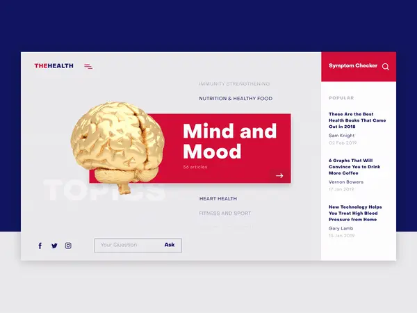 Health Blog文章列表基于印刷层次结构和负空间,使内容看起来清晰了然