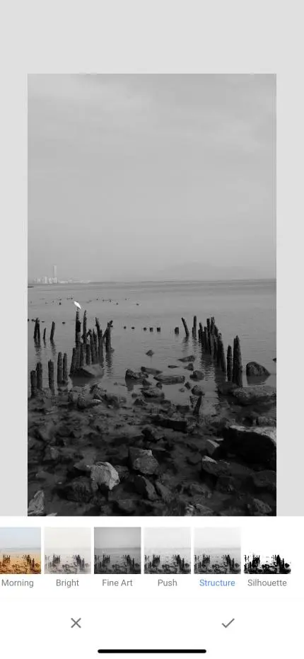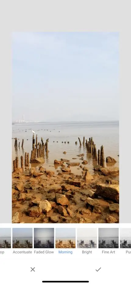 原图色彩暗,对比不够,构图偏上,最主要是意境没达到,下面我用手机app来进行处理,我用的是snapseed这款app,功能强大