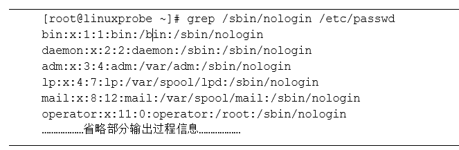 在Linux系统中,/etc/passwd文件是保存着所有的用户信息,而一旦用户的登录终端被设置成/sbin/nologin,则不再允许登录系统,因此可以使用grep命令来查找出当前系统中不允许登录系统的所有用户信息: