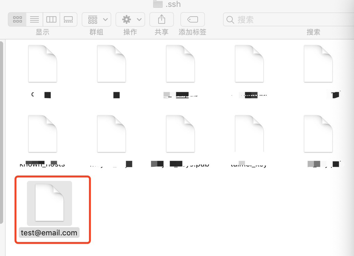 然后把 ”test@email.com“(私钥) 拷贝到 “.ssh”文件夹下