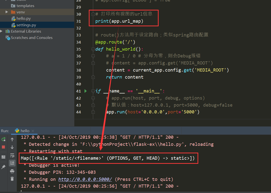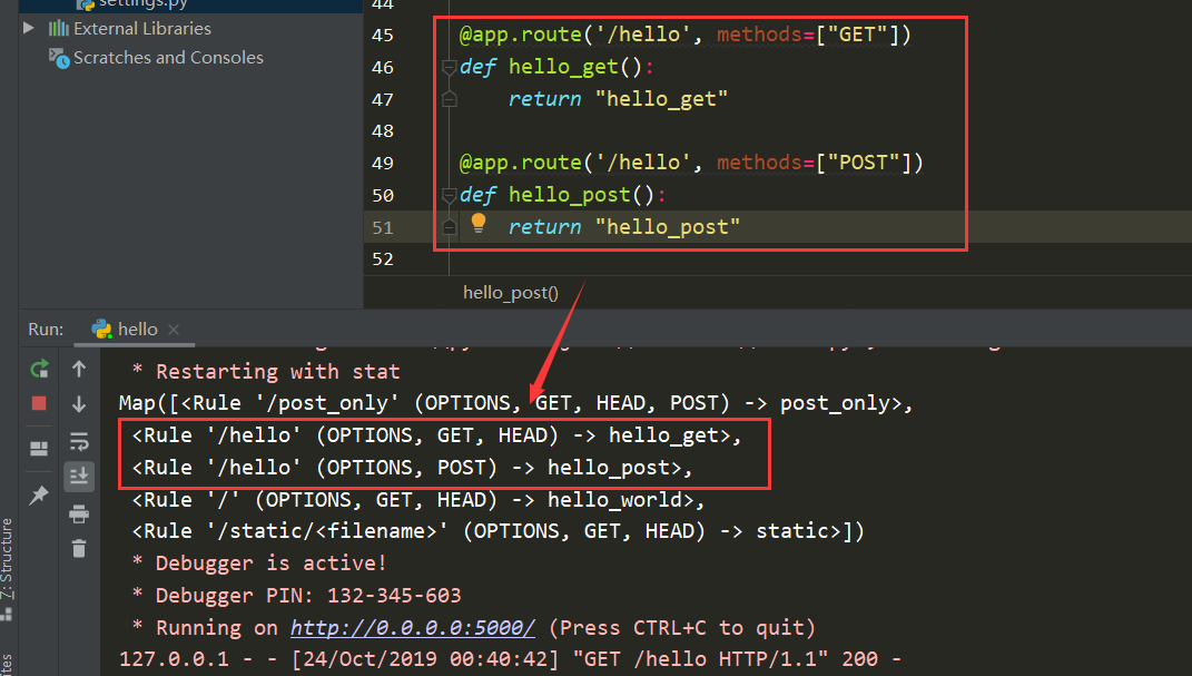 可以看到页面自动跳转至 hello_get 的视图函数中。