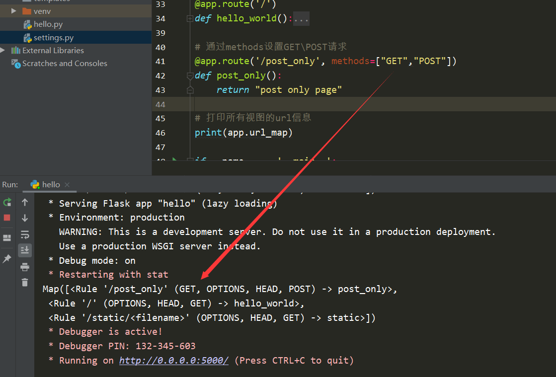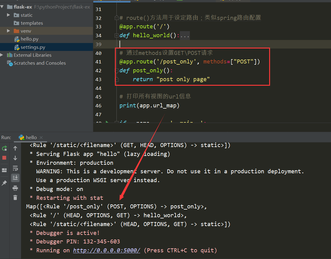 从结果来看,同一个url下,根据配置不同的method,则可以设置到不同的视图函数进行业务处理。
