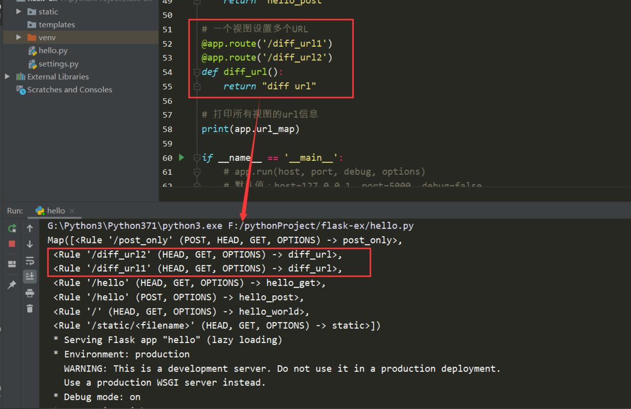 - 访问第一个url地址 http://127.0.0.1:5000/diff_url1