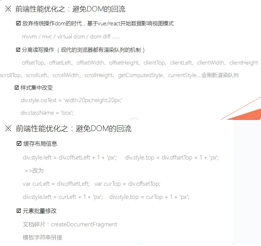 - 分离读写操作(现在的浏览器都有渲染队列的机制)把改变的样式下写获取的用来阻断