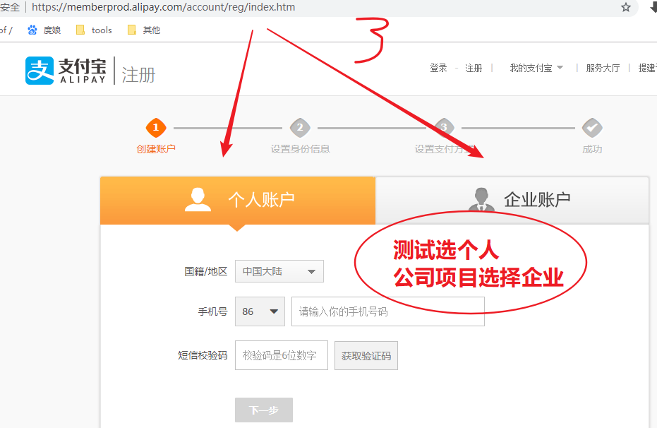 注册支付宝账号(