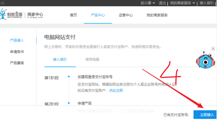 2:接入电脑网站支付产品(ps. 仅企业支付宝账号需要进行签约)