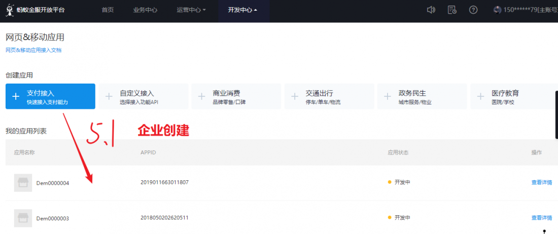 3:创建应用(ps. 在开放平台)https://open.alipay.com/platform/home.htm