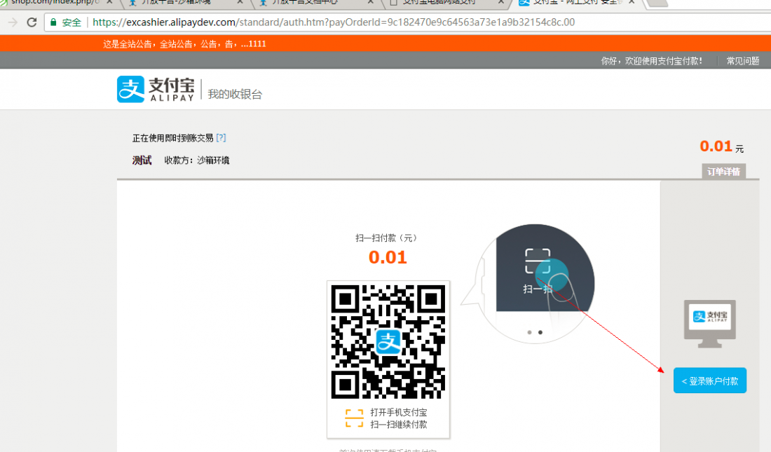 PHP实现,在自己的商城点击【立即付款】按钮后出现支付界面