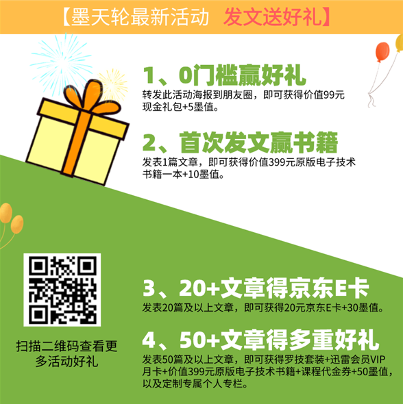 第二重好礼:发表1篇文章,即可获得价值399元原版电子技术书籍一本+10墨值。