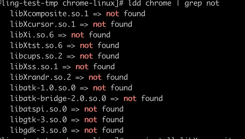 ldd chrome | grep not #列出还未安装的依赖