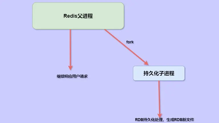 首先 Redis 的主进程会调用 glibc 的函数 fork 产生一个子进程,此时会将文件 持久化全部交给子进程去处理,那么这时父进程就可以继续处理用户的请求了(bgsave执行之后直接会返回)。当然,在主进程进行 fork 操作的时候可能也会对用户请求命令 产生短暂的阻塞 。