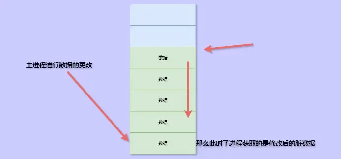 因为我们需要的是在子进程产生的那一瞬间的数据(快照),如果此时因为用户请求在主进程修改了内存中的数据,那么子进程遍历的内存就会被更改,这个时候就不是快照数据了。