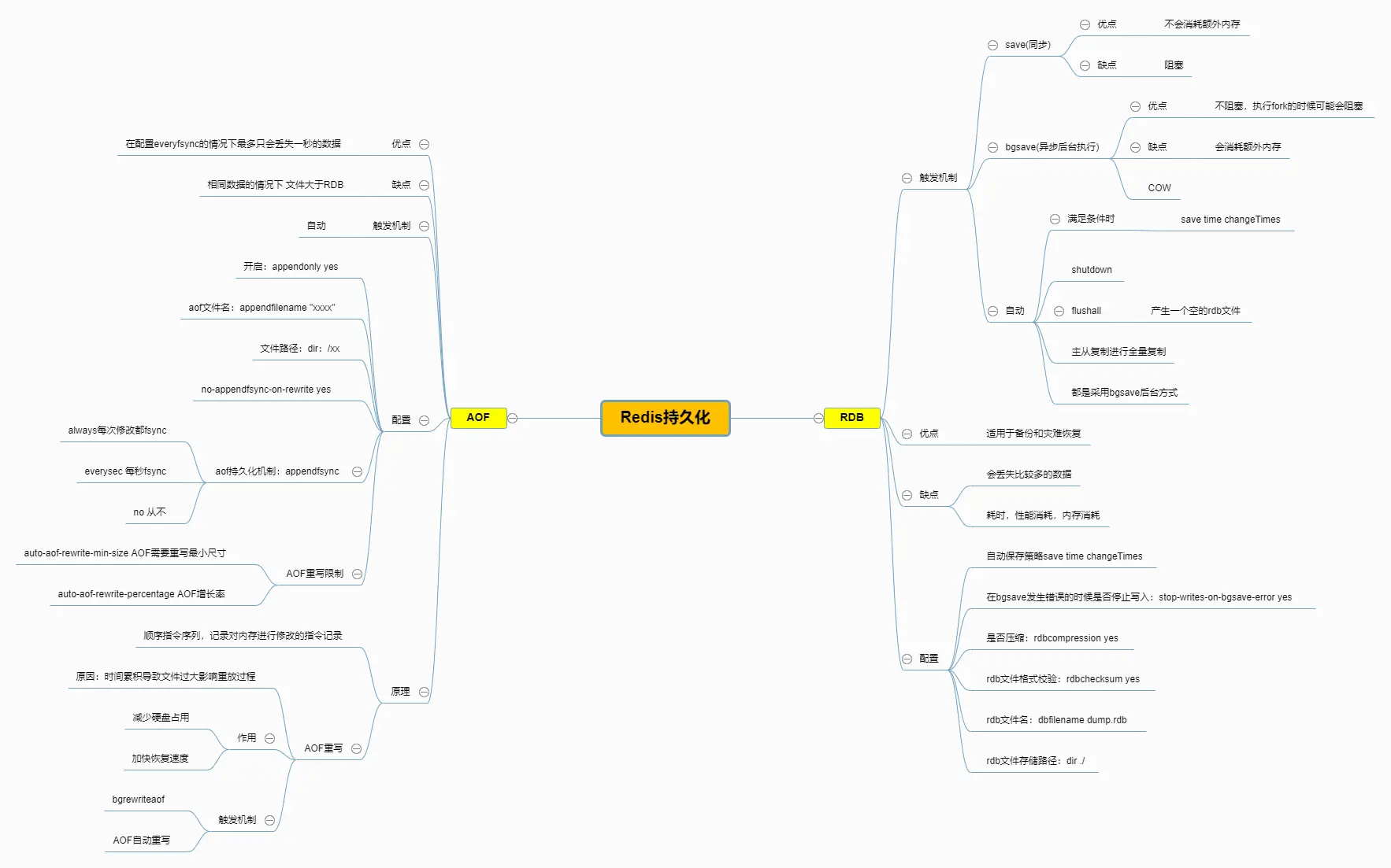 AOF文件的大小要比RDB文件大得多,如果使用它进行内存状态恢复需要花费很长时间。 - 优点: 持久化快,能减少数据丢失的量,在配置
