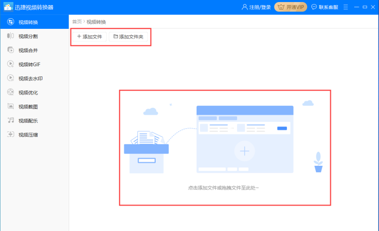 2、随后把通过各种途径保存好的qlv格式的视频添加到视频转换器中,添加的方法分为两类,一类是点击左上角的两个按钮,一类是把视频拖拽到软件空白处。