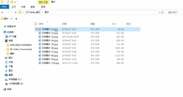 QTTabBar 最为核心的功能是为资源管理器加上类似网页浏览器那样的多标签页功能,成功启动之后 你就会发现资源管理器中多出了一栏标签页栏,以往打开一个目录就需要打开一个窗口变成了打开目录就打开一个标签页,这样打开再多文件夹资源管理器窗口也可以井然有序。