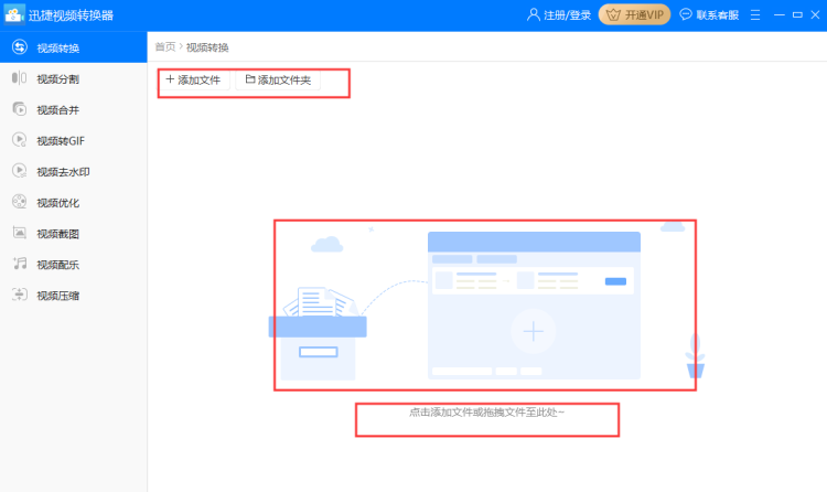 2、把事先准备好的qsv格式的视频添加到转换器中,添加时可以点击左上角的添加文件按钮也可以把文件拖拽到软件空白处,或者点击正中的‘+’号选择文件。
