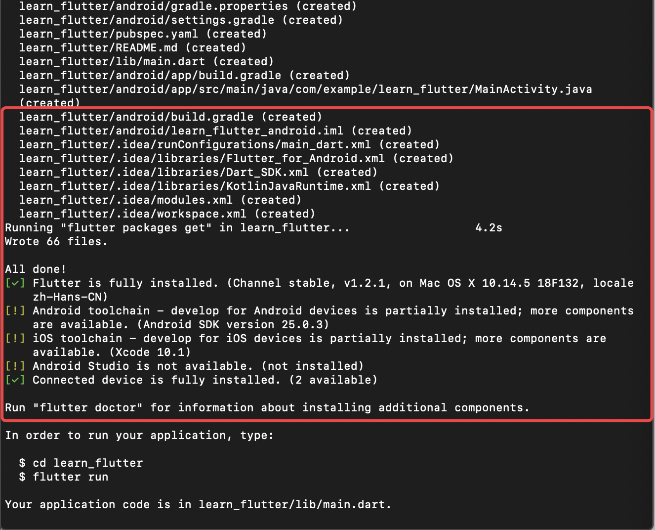 flutter create learn_flutter