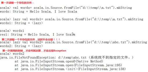 当val被申明为lazy时,它的初始化将被推迟,直到我们首次对它取值。