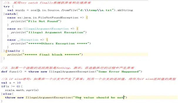 Scala异常的工作机制和Java或者C++一样。直接使用throw关键字抛出异常。