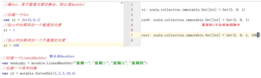 在Scala中集合有可变(mutable)和不可变(immutable)两种类型,immutable类型的集合初始化后就不能改变了(注意与val修饰的变量进行区别)