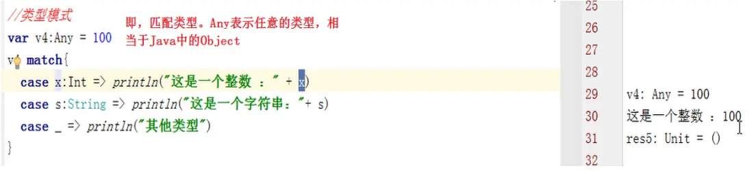 注意:在Scala中,定义变量可以不指定类型,因为Scala会进行类型的自动推导。