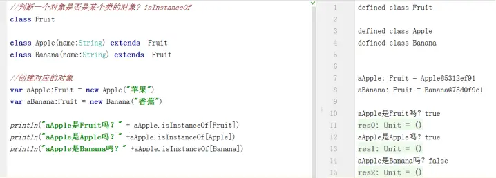其次,如果我们想判断一个对象是否是某个类的对象,跟Java一样可以使用isInstanceOf