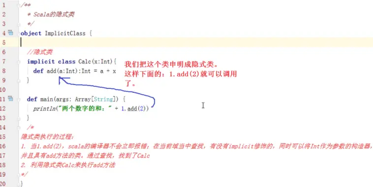所谓隐式类: 就是对类增加implicit 限定的类,其作用主要是对类的功能加强!