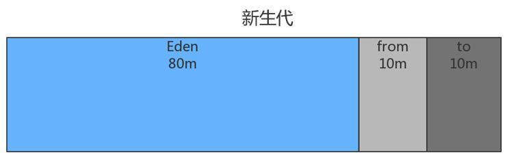 90%的对象都是朝生夕死的,所以使用10%的空间用作交换区,因为交换区必须有等量的两个,所以采用复制算法的新生代中的三个区采用8:1:1的默认分配比例。