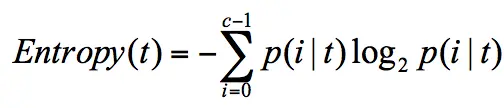 p(i|t) 代表了节点 t 为分类 i 的概率,其中 log2 为取以 2 为底的对数。这里我们不是来介绍公式的,而是说存在一种度量,它能帮我们反映出来这个信息的不确定度。当不确定性越大时,它所包含的信息量也就越大,信息熵也就越高。