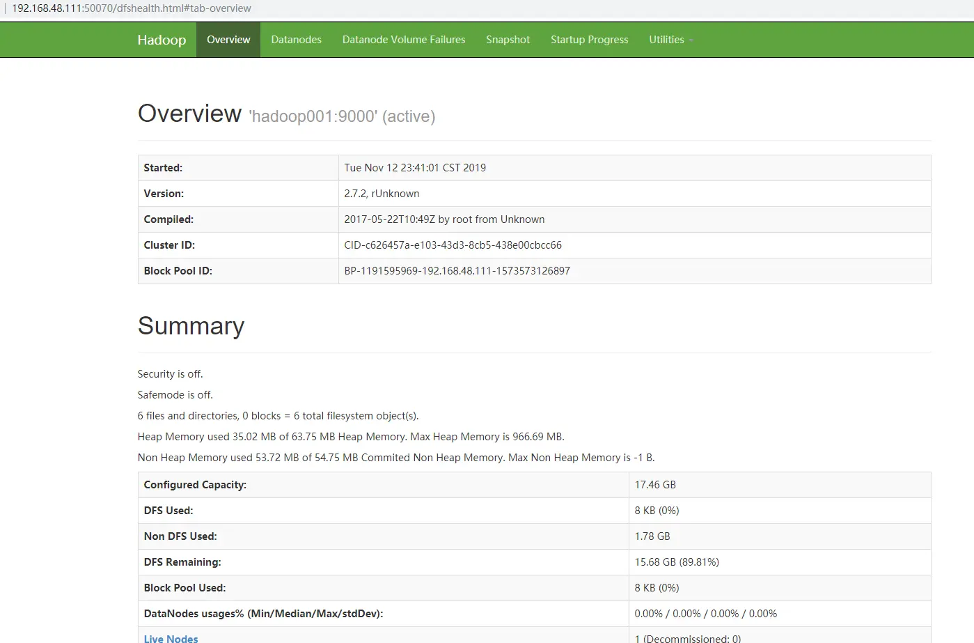 浏览器访问:http://192.168.48.111:50070