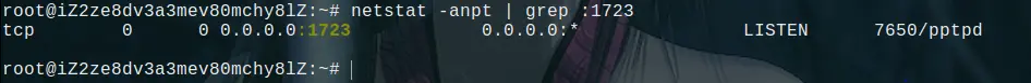 详细查看查看一个服务的运行状态。可以看到服务正在处于监听状态,默认监听1723端口,所以防火墙的tcp1723端口要打开,我这里用的是阿里云的服务器,可以直接在网页端操作服务器的防火墙,将这个端口打开即可。