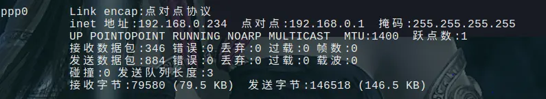 保存以后连接VPN即可。使用ifconfig查看ip,含有ppp0且ip也在我们为其分配的区间内,说明已经连接成功了。
