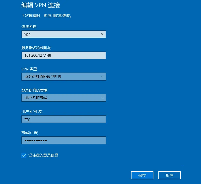 /etc/ppp/chap-secrets中设置的,这里设置的是zzy - 密码:也是在4.3