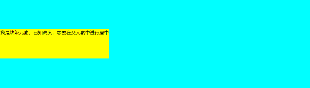 3.2 当元素为块级元素时,并且它的高度知道,也可以使用以下方法。