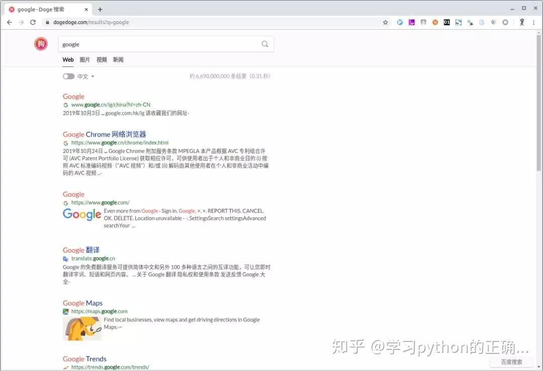 自行体会,而且我发现 Doge 还能搜到一些 Google 才能搜到的内容,就挺 nice 啊。